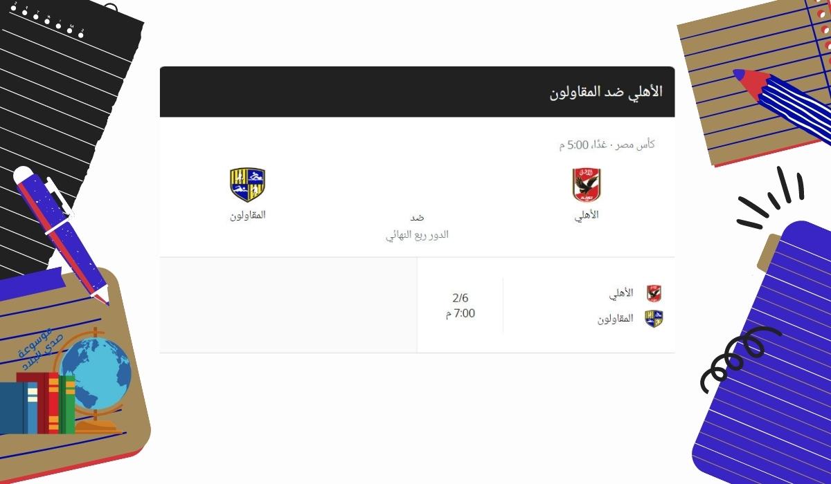 مواعيد مباراة كأس مصر الاهلي ضد المقاولون العرب