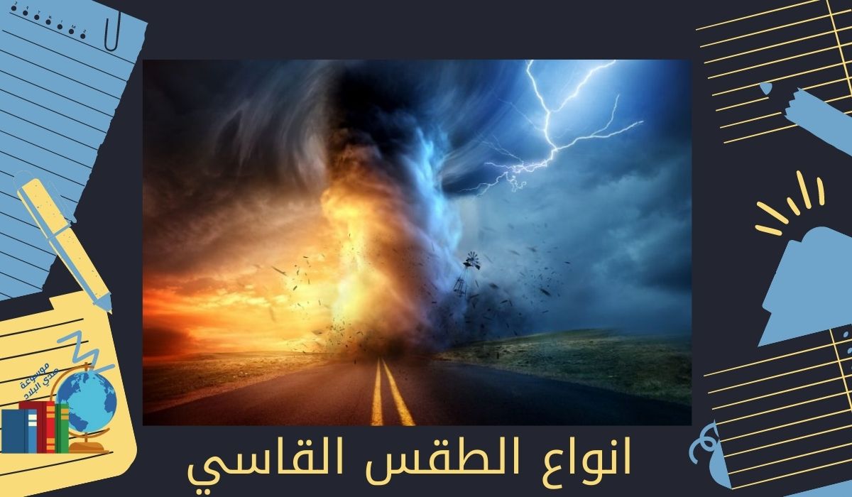 هناك أنواع قليلة من الطقس القاسي الذي يمكن أن يؤثر على منطقتنا. العواصف الرعدية الشديدة والأعاصير والفيضانات المفاجئة كلها أنواع من الطقس القاسي الذي يمكن أن يكون خطيرًا ويسبب خسائر في الأرواح.