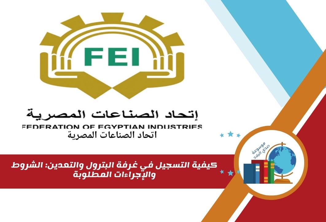 - قانونيًا: يعد التسجيل في غرفة البترول والتعدين متطلبًا قانونيًا للعمل في صناعتي البترول والتعدين في مصر.