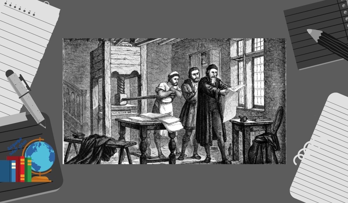 اخترع المخترع الألماني يوهانس جوتنبرج آلة الطباعة في وقت ما بين عامي 1440 و1450. وكان مفتاح تطويرها هو القالب اليدوي، وهي تقنية قولبة جديدة مكنت من الإنشاء السريع لكميات كبيرة من المعادن المنقولة. على الرغم من أن آخرين قبله – بما في ذلك المخترعون في الصين وكوريا – قد طوروا نوعًا متحركًا مصنوعًا من المعدن، إلا أن جوتنبرج كان أول من ابتكر عملية ميكانيكية تنقل الحبر (الذي صنعه من زيت بذر الكتان والسخام) من النوع المتحرك إلى الورق.