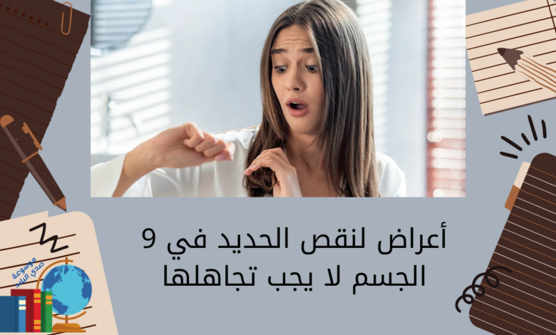 9 أعراض لنقص الحديد في الجسم لا يجب تجاهلها عدّ الحديد من المعادن الهامة التي يحتاجها الجسم للحفاظ على صحته وسلامته، إذ يساعد على نقل الأكسجين والطاقة إلى جميع أنحاء الجسم. لكنّ قد يعاني بعض الأشخاص من نقص في هذا المعدن الحيوي، مما يؤدي إلى مشاكل صحية مختلفة. في هذا المقال، سنستعرض معًا 9 علامات تدل على نقص الحديد في الجسم التي يجب على كل شخص مراقبتها وتفاديها.