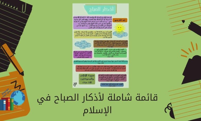 قائمة شاملة لأذكار الصباح في الإسلام لا يمكن المبالغة في أهمية ذكرى الصباح في الإسلام. ذكرى الصباح جزء لا يتجزأ من الممارسة الروحية اليومية للمسلم، حيث تساعد على ضبط نغمة اليوم، مع الثناء على الله وشكره على فضله ورحمته. وذكر النبي محمد (صلى الله عليه وسلم) أن ذكر الصبح يشمل الحمد لله، والصلاة على النبي، والاستغفار. كما يساعد أداء ذكرى الصباح على تقوية الإيمان بالله وزيادة الوعي بحضوره. بالإضافة إلى ذلك، قيل إن ذكرى الصباح تساعد على حماية النفس من إغراءات وتجارب هذا العالم. ويبدأ وقت أذكار الصباح من ظهور الفجر الصادق وهو وقت صلاة الفجر. ومن المهم الحرص على أداء أذكار الصباح وحده متبعا سنة نبي الله محمد صلى الله عليه وسلم. من خلال الانخراط في هذه الممارسة، يمكن للمسلمين جني ثمار العلاقة الوثيقة مع الله والرضا عن الله تعالى.