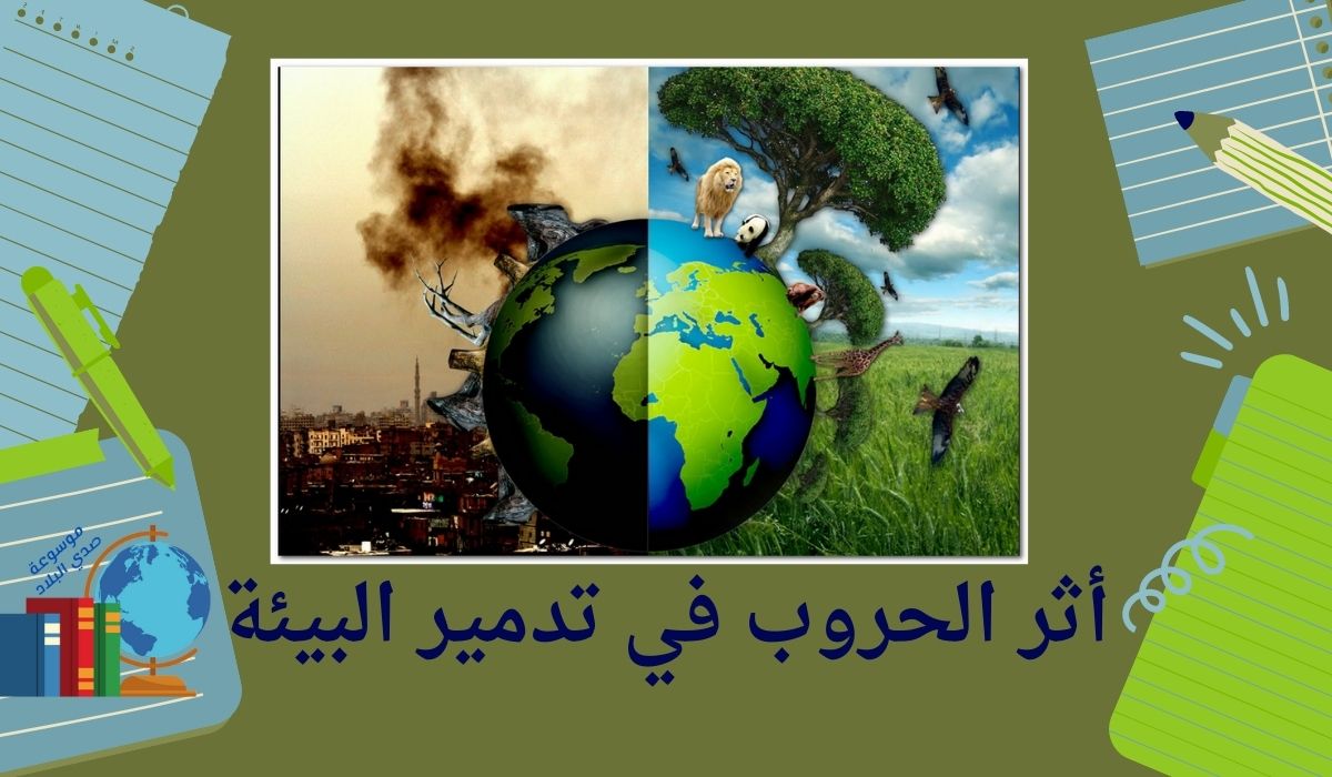 تأثير الحروب على تدمير البيئة كبير. استخدام الأسلحة الكيماوية يلوث الهواء والماء ويضر بالحياة البرية. يؤدي تدمير المباني وحقول النفط إلى نشوب حرائق تطلق مواد كيميائية ضارة في الغلاف الجوي. حركات النقل العسكري تزعج النظم البيئية ويمكن أن تسبب تآكل التربة.