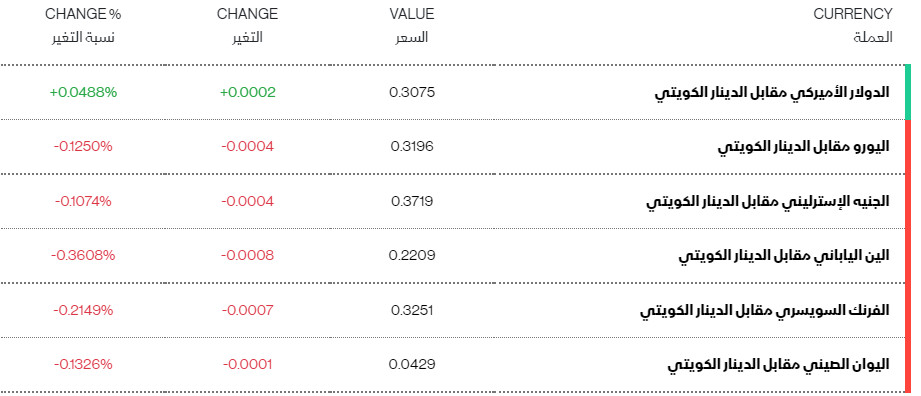 سعر الصرف من الدينار الكويتي إلى الدولار اليوم، لايف 1 KWD إلى USD = 3.